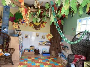 Aula 4 (usos múltiples): esta aula es un espacio el cual utilizamos para el disfrute de provocaciones o instalaciones relacionadas con los proyectos trabajado en el aula. También dispone de una pequeña biblioteca.
